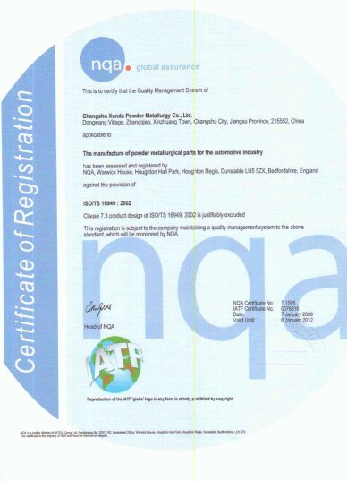 关于常熟市迅达粉末冶金有限公司简介:公司始建于1992年6月,总资产达8000余万元,其中设备资产3500余万元,占地面积20000平方米,建筑面积近15000平方米,拥有60多台3-1000T的成形机、各类精整机、烧结炉、CNC全自动数控加工设备及各类专用设备200余台(套)。公司于2008年通过TS16949与ISO14001认证,目前已完成体系升级。